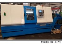 本機(jī)床用于汽車差速器殼體內(nèi)腔平面及(ji)球(qiu)面的(de)加工。機(jī)床為臥式雙面(mian)布置,左(zuo)端為(wei)DSS精鏜頭和液壓(ya)滑臺(tái)組成(cheng),右端為(wei)DSS精鏜頭(從動(dòng)軸,無(wú)動(dòng)力)和液壓(ya)及液壓(ya)滑臺(tái)組成。中間為夾具,夾(jia)具(ju)安裝在專用數(shù)控移動(dòng)工作臺(tái)上,用于锪面進(jìn)給(gei)。后方為雙位送(song)刀機(jī)械手,上件后送刀機(jī)械手送粗加工刀進(jìn)去,動(dòng)力頭頂(ding)緊刀具機(jī)(ji)械手退(tui)回,數(shù)控工作臺(tái)左右工進(jìn),完成粗锪面工序。刀具回位后,機(jī)(ji)械(xie)手將粗锪刀取走,另一(yi)機(jī)械(xie)手送精锪刀進(jìn)入工件,重復(fù)上次循環(huán),完成(cheng)精加工。一次裝(zhuang)夾一個(gè)工件??赏ㄟ^更換、調(diào)整(zheng)定位夾緊元件(jian),實(shí)現(xiàn)多品種的(de)互換加工。